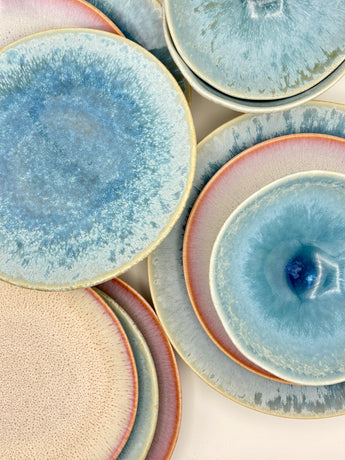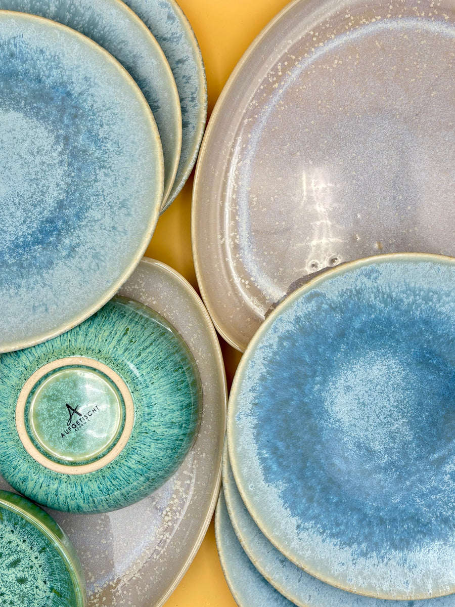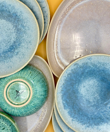 Jedes Stück erzählt seine eigene Geschichte. Die Farben, die Glasuren, die Oberflächen – sie spielen mit dem Licht, tanzen mit deinen Augen. Ein einfaches Abendessen wird zu einem kleinen Fest. Jeder Moment wird sichtbar, jeder Moment strahlt.